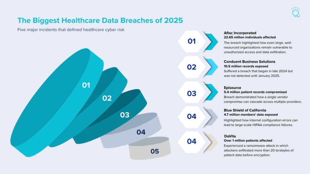 In this article, we review the top 5 healthcare data breach incidents of 2025, try to understand what went wrong, risk signals, and how you can be better prepared in 2026 and stay HIPAA compliant.